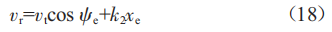 式中:,r為速度控制率,可將其視為路徑上"虛擬向?qū)c"的速度,會根據(jù)無人航行器與參考路徑的位置關系即xe的值調(diào)整其自身數(shù)值大小,以引導無人航行器加速或減速運動。