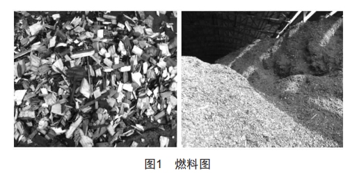本文的研究對象是浙江某熱電廠的4號鏈條爐,額定蒸發(fā)量是35t/h,出口過熱蒸汽設計溫度450℃,過熱蒸汽出口設計壓力3.9MPa。為響應國家節(jié)能環(huán)保要求,鍋爐計劃由燃煤改燒生物質(zhì)燃料,即全部采用農(nóng)林及生活廢棄物,如農(nóng)作物秸桿、樹枝及樹葉等。入爐前對原料進行處理,經(jīng)過壓料機轉(zhuǎn)化成5cm×5cm片料及粉料,如圖1所示。片料由輸料系統(tǒng)送到鍋爐爐排,進行預熱燃燒:粉料則與經(jīng)過空氣預熱器加熱的熱空氣一并經(jīng)由輸送管道輸送到爐膛前墻噴料口噴入鍋爐爐膛進行燃燒。鍋爐尾部豎井煙道布置三級省煤器及兩級空氣預熱器,煙道尾部布置1臺CNI-3.0旋風除塵器以及LCDM-4-512-LD-Gw布袋除塵器對鍋爐排煙進行凈化處理。