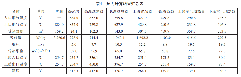 方案1:移除下級空預器,換熱器受熱管束采用錯列布置,熱力計算結(jié)果匯總于表2。