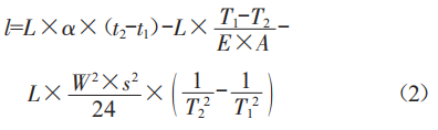公式(2)分為三部分,其中L×a×(12-11)為僅考慮線材本身的材質(zhì)特性及溫度變化的伸長量,
