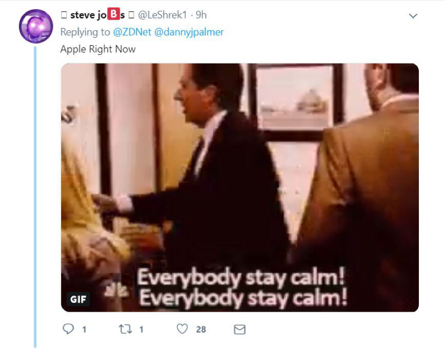 (翻譯:此刻蘋果的反應(yīng):大家別慌!別慌?。?/em>