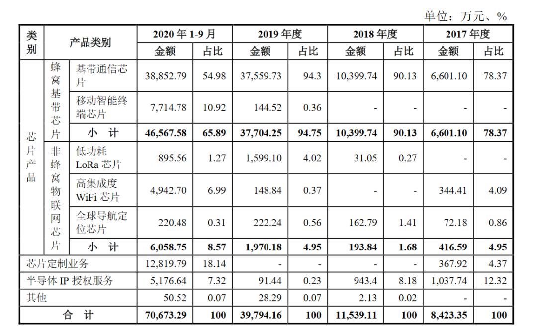 根據(jù)其招股書顯示,翱捷科技收入由芯片產(chǎn)品、芯片定制業(yè)務(wù)及半導(dǎo)體IP授權(quán)服務(wù)構(gòu)成,收入結(jié)構(gòu)在報(bào)告期內(nèi)變化較大。其中,芯片產(chǎn)品收入是公司主要收入來源。公司芯片定制業(yè)務(wù)主要集中在2020年1-9月實(shí)現(xiàn)收入,2020年1-9月芯片定制業(yè)務(wù)收入主要來自于客戶S。公司半導(dǎo)體IP授權(quán)服務(wù)收入主要集中在2020年1-9月,主要客戶為手機(jī)廠商OPPO。