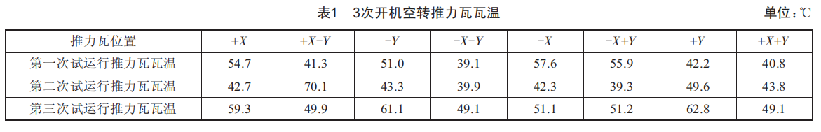 至此,3次開機(jī)試運(yùn)行均宣告失敗。3次開機(jī)瓦溫如表1所示。