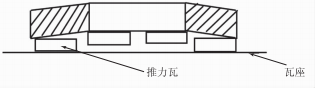 (2)檢測(cè)結(jié)果分析:鏡板變形導(dǎo)致調(diào)整受力情況存在一定的虛假性,以致盤車時(shí)推力瓦受力狀態(tài)不穩(wěn)定,盤車數(shù)據(jù)存在無規(guī)律性,再結(jié)合燒瓦的實(shí)際情況來看,分析出現(xiàn)了如圖3所示的情形。