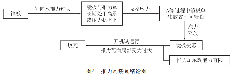 綜合鏡板與推力瓦的兩大因素考慮,最終得出推力瓦燒瓦結(jié)論,如圖4所示。