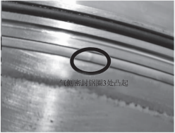 圖3為機(jī)2氣側(cè)鋼制密封圈,有3處凸起不平整,機(jī)2運(yùn)行一周出現(xiàn)泄漏。