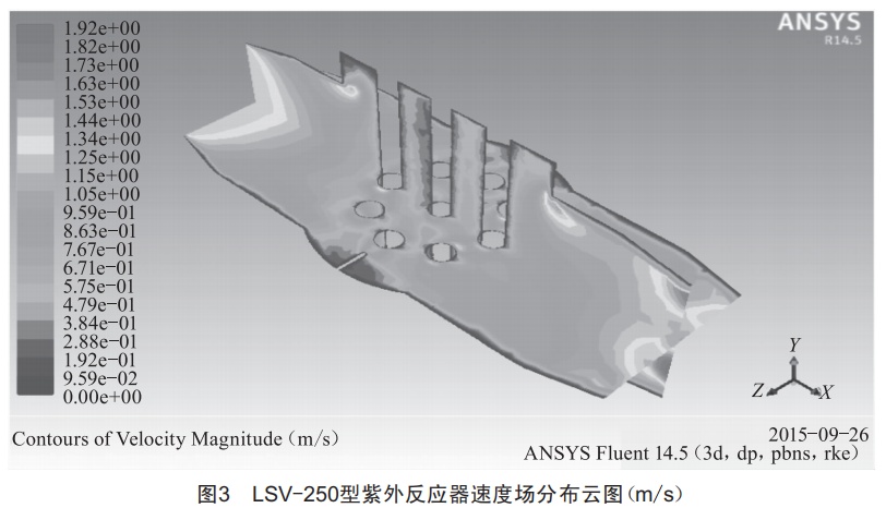 1中壓紫外反應(yīng)器內(nèi)流區(qū)的CFD模擬