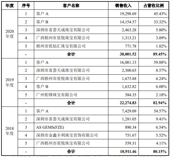 具體來(lái)看,公司2020年來(lái)自客戶A和客戶B的收入占比為78.75%,剩下的客戶皆為珠寶公司。據(jù)資本幫了解,山東天岳生產(chǎn)碳化硅襯底過(guò)程中所形成的未達(dá)到半導(dǎo)體級(jí)的不合格晶棒,可用于進(jìn)一步加工制造人造寶石莫桑鉆。而公司將不合格晶棒列入其它業(yè)務(wù)收入,該項(xiàng)收入在2020年占比為17.80%。也就是說(shuō),前兩大客戶加上其它業(yè)務(wù)收入,占據(jù)了營(yíng)收的96.55%,公司引以為傲的碳化硅襯底業(yè)務(wù)實(shí)際上只有兩個(gè)核心買家,兩家客戶把公司抬進(jìn)IPO。