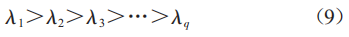 式中:S為m×m階正交矩陣:D為n×n階正交矩陣:V為m×n階對(duì)角矩陣,其對(duì)角線上有非零值入1,入2,…,入g。