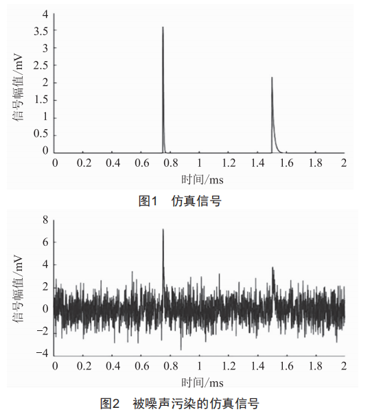 式中:A1、A2為振幅,分別取0.1和150:T1、T2為衰減系數(shù),分別取13.2uS和2.1uS。