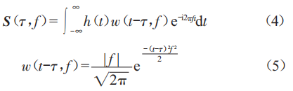 式中:S(T,f)為分解后所得的時(shí)頻矩陣:h(t)為被分析信號(hào):w(t_T,f)為高斯窗函數(shù):T為平移因子,控制高斯窗函數(shù)在時(shí)軸上的位置:f為頻率:i為虛數(shù)單位。
