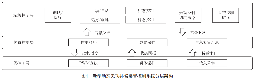 控制系統(tǒng)通過測量電壓、電流等電氣量,并進行相應(yīng)運算,判斷動態(tài)無功補償控制系統(tǒng)工作狀態(tài),選擇動態(tài)無功補償控制模式,由站級控制層、裝置控制層和閥控制層按照各自職能控制功率元件,或者通過人機界面選取控制模式、設(shè)定控制系統(tǒng)的參數(shù),然后進行相應(yīng)的控制。