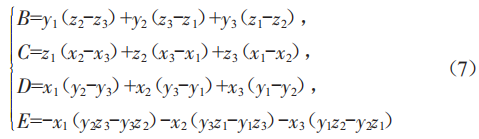 平面在空間直角坐標(biāo)系中的方程為Bx+Cy+D:+E=0,已知平面上3個(gè)點(diǎn)(其中取2個(gè)是最遠(yuǎn)的頂點(diǎn)以便確定平面上的點(diǎn)的取值范圍)[x1y1:1],[x2y2:2],[x3y3:3],代入后可求得系數(shù):