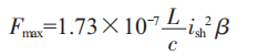 如某母線系統(tǒng),選擇矩形銅導(dǎo)體截面尺寸為60mm×10mm,A、B、C三相之間的相間距c=200mm,母線夾之間的距離L=600mm,三相預(yù)期短路峰值電流Ipk=73.5kA??梢韵扔糜?jì)算的方法來驗(yàn)證該導(dǎo)體的固有頻率及最大電動(dòng)力,再用短路試驗(yàn)來進(jìn)一步驗(yàn)證可靠性。