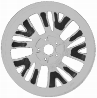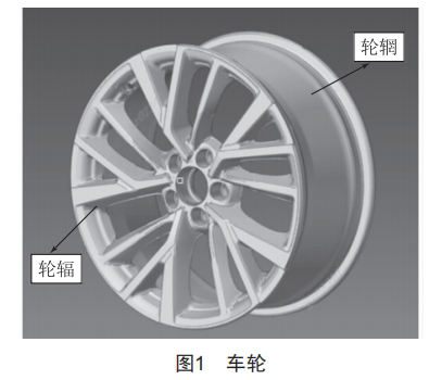 車輪是介于輪胎和車軸之間承受負(fù)荷的旋轉(zhuǎn)組件,如圖1所示,通常由兩個(gè)主要部件輪錮和輪輻組成。輪錮是在車輪上安裝和支撐輪胎的部件,輪輻是在車輪上介于車軸和輪錮之間的支撐部件。