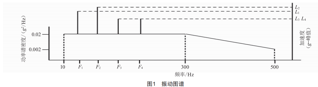 該機載電子設(shè)備振動環(huán)境的特點是在寬帶隨機上迭加了很強的振動峰值,其振動圖譜如圖1所示。