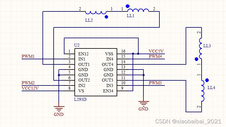 另一路LL3和LL4電磁鐵也是一樣的原理,可以通過(guò)PWM3控制磁場(chǎng)強(qiáng)度,通過(guò)PWM4來(lái)控制磁場(chǎng)方向。