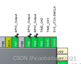 設(shè)置完成后,PA15和PB3自動(dòng)被占用為PWM輸出引腳。
