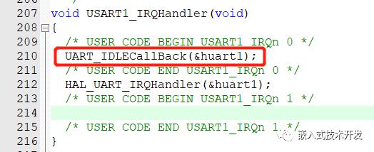最后,別忘了在串口中斷函數(shù)中調用自己編寫的空閑中斷函數(shù)。