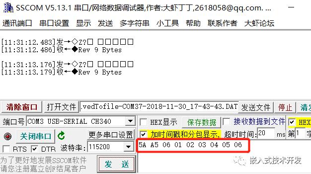 同樣,在主程序中判斷一幀數(shù)據(jù)的接收完成并處理,運行測試結果如下: