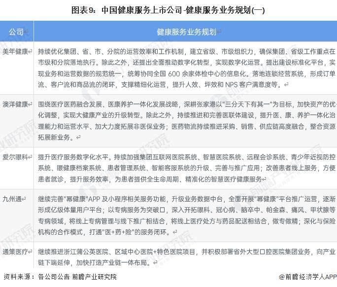5、健康服務(wù)行業(yè)上市公司健康服務(wù)業(yè)務(wù)規(guī)劃對(duì)比