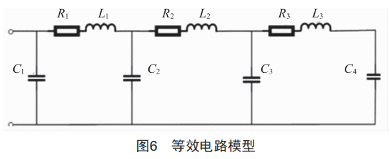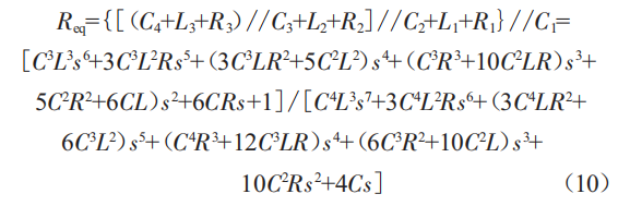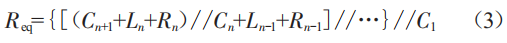 式中:Req表示從電路模型左側(cè)端口看進(jìn)去的等效阻抗:Cn表示第n個(gè)m型電路中的等效電容:Ln表示第n個(gè)m型電路中的等效電感:Rn表示第n個(gè)m型電路中的等效電阻。