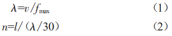 式中:入為諧波波長(zhǎng):,為諧波波速:fmax取從線路首端測(cè)得的超高次諧波頻譜圖中幅值大于基波電壓5%的最高諧波頻率:n為m型電路的個(gè)數(shù)。