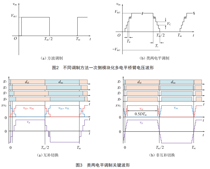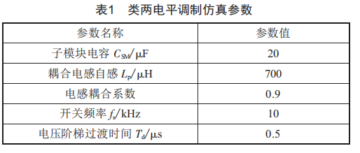 類兩電平調(diào)制一方面具有方波調(diào)制高直流電壓利用率的優(yōu)點,另一方面又克服了方波調(diào)制dx/d1過大的缺陷,因此該調(diào)制方法適用于模塊化多電平型DC-DC變換器。