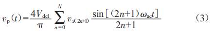 對于類兩電平調(diào)制,若要分析子模塊數(shù)量S與每個階梯時間間隔7d對功率傳輸?shù)挠绊?此時電壓/電流變化的狀態(tài)數(shù)過多,利用瞬時功率積分法將會增加計算的復(fù)雜度。本文利用相量法計算功率特性,該方法的核心是通過電壓/電流量的傅里葉分解,在可接受的誤差范圍內(nèi)取分解后的項數(shù)得到功率傳輸方程。下面將對相量法的計算過程進(jìn)行詳細(xì)分析。