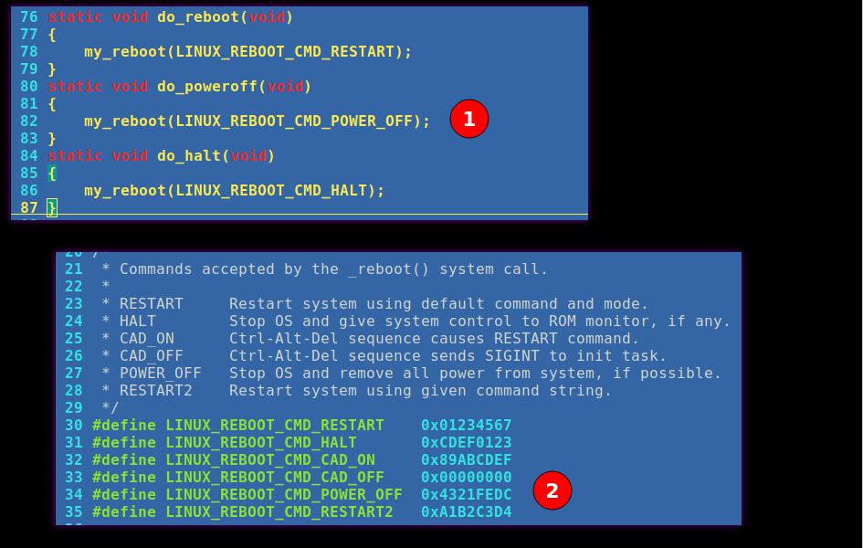 再在Linux源碼搜索響應(yīng)改宏命令位于kernel/reboot.c