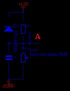 同樣要進(jìn)行上電、穩(wěn)態(tài)、掉電整個(gè)過(guò)程進(jìn)行分析,首先上電階段t0之前的時(shí)間段,B點(diǎn)斜率高于A點(diǎn)斜率,占空比輸出0%,沒有問(wèn)題,穩(wěn)態(tài)階段t0---t1時(shí)間段正常輸出40%占空比(t0-t1階段表示三角波和直流電平都處于穩(wěn)態(tài)時(shí)候),沒有問(wèn)題,放電階段t1---t2時(shí)間段,因?yàn)锽點(diǎn)的阻抗大于A點(diǎn)的阻抗所以B點(diǎn)的放電速度會(huì)一直比A點(diǎn)慢,就會(huì)出現(xiàn)B點(diǎn)電壓一直恒高于A點(diǎn)電壓,那A比較器會(huì)一直輸出高,占空比一直輸出100%,而且這個(gè)方案還有一個(gè)問(wèn)題就是電容上的電壓無(wú)法控制,雖然充電阻抗比較大但是隨著時(shí)間推移電容上的電壓還是會(huì)等于電源電壓的,到時(shí)候比較器恒輸出100%占空比,會(huì)損壞后極電路,所以這個(gè)方案不可取,那怎么才能控制住B點(diǎn)的電壓可控且放電速度大于A點(diǎn)呢?想要電壓可控是不是的用電阻進(jìn)行分壓,要想放電速度快是不是需要放電阻抗比C39電容的放電阻抗小,順著這兩個(gè)思路我們分析一下這個(gè)電路該怎么搭建,給電容并聯(lián)一個(gè)電阻可以進(jìn)行電阻分壓控制電容上的電壓,那在上面電阻并聯(lián)一個(gè)二極管可以降低電容上的放電阻抗加快放電速度那我們看一下圖四示分析一下這個(gè)電路如何。