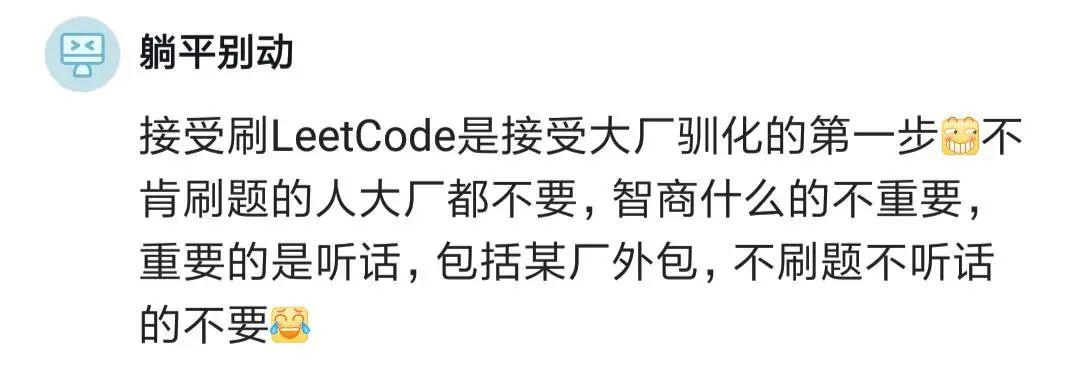 有人說,接受刷leetcode是接受大廠馴化的第一步,對(duì)大廠來說,重要的是聽話。