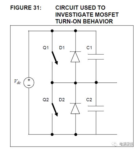 這里有一個(gè)需要設(shè)計(jì)者注意的是磁化電流需要足夠大,以便在特定的死區(qū)時(shí)間內(nèi)能夠完成對C1的充電和對C2的放電,設(shè)計(jì)者可以進(jìn)行合適的死區(qū)時(shí)間選擇和器件寄生參數(shù)的選擇。當(dāng)C2電壓充電到高于Vdc時(shí)開關(guān)Q1的體二極管D1就可以隨時(shí)準(zhǔn)備導(dǎo)通。