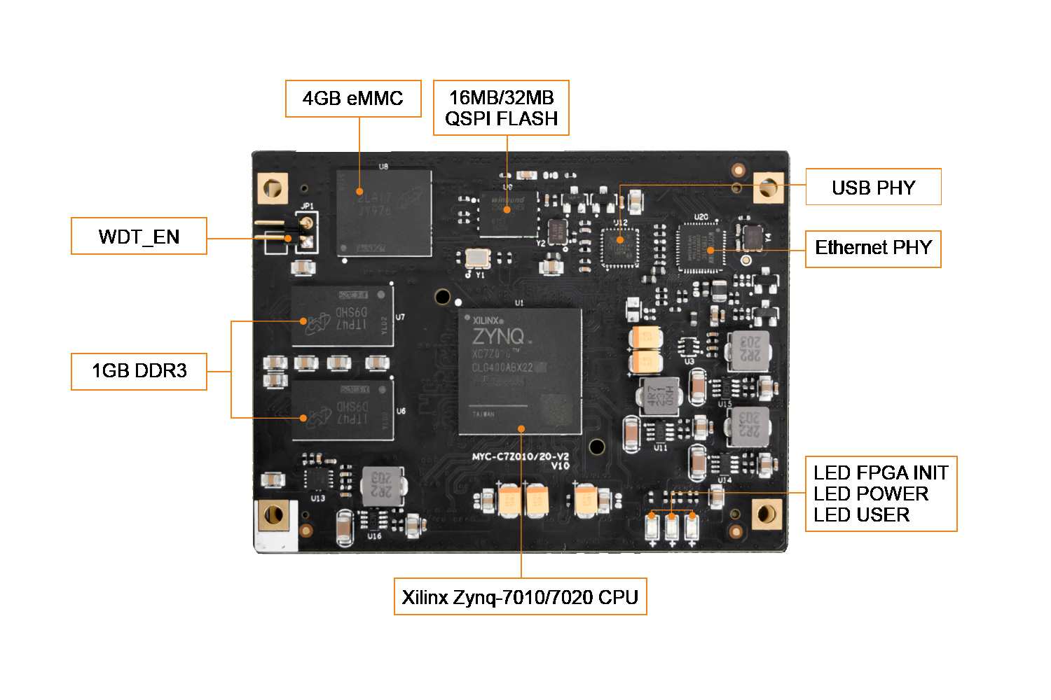 SOC:Xilinx Zynq-7010/20 高性能雙核ARM Cortex-A9處理系統(tǒng)(PS),F(xiàn)PGA架構:可編程邏輯單元XC7Z010(28K,約43萬邏輯門)XC7Z020(85K,約1.3M邏輯門)。