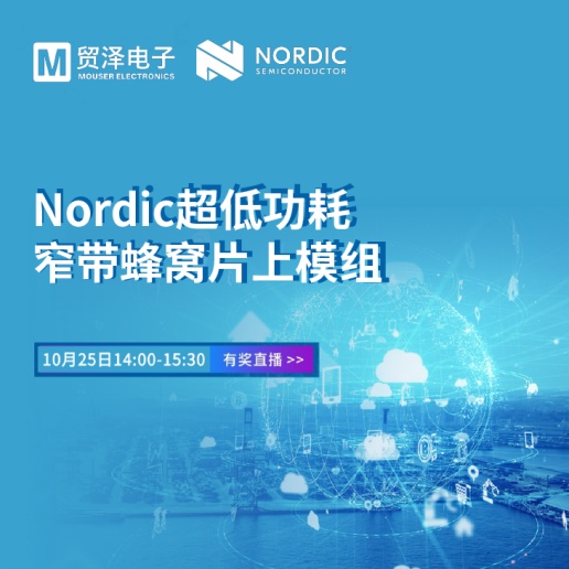 2022年10月20日 – 專(zhuān)注于引入新品推動(dòng)行業(yè)創(chuàng)新?的電子元器件分銷(xiāo)商貿(mào)澤電子宣布將攜手Nordic于10月25日14:00-15:30舉辦主題為“Nordic超低功耗窄帶蜂窩片上模組”的專(zhuān)題技術(shù)研討會(huì)。屆時(shí),來(lái)自Nordic的資深技術(shù)專(zhuān)家將為大家?guī)?lái)Nordic的超低功耗產(chǎn)品在物聯(lián)網(wǎng)方面的開(kāi)發(fā),助力工程師設(shè)計(jì)出更具性能優(yōu)勢(shì)的產(chǎn)品。