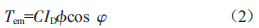式中:Tem為拖動電磁轉矩(N·m):C為系數(shù),與機組特性相關:ID為靜止變頻器直流回路電流值(A):coso為靜止變頻器功率因數(shù):小為磁通(wb)。