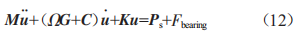 綜合Timoshenko梁單元模型、基礎(chǔ)脈沖激勵載荷以及軸承非線性力模型,對基礎(chǔ)脈沖激勵作用下的轉(zhuǎn)子一非線性軸承系統(tǒng)進行建模,得到的運動微分方程如式(12)所示。