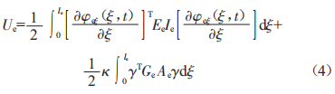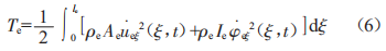 考慮旋轉(zhuǎn)慣性情況下單元的動能表達式如式(6)所示: