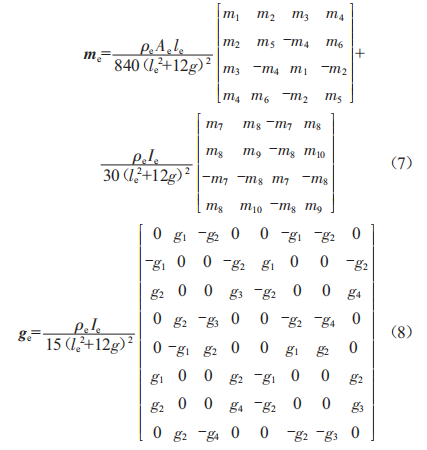 單元的慣性矩陣和陀螺矩陣分別如式(7)和式(8)所示: