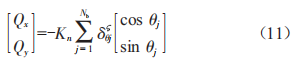 利用Hertz接觸理論,對深溝球軸承內(nèi)外環(huán)與滾珠間的接觸剛度進行建模,然后通過力學關(guān)系建立了軸承非線性力的模型。軸承非線性力在x、y方向的分量如式(11)所示: