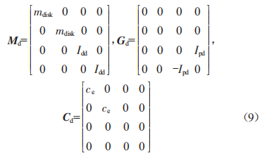 輪盤的慣性矩陣、陀螺矩陣、阻尼矩陣如式(9)所示: