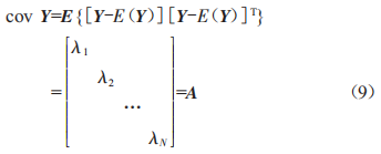 式中:E(·)表示統(tǒng)計(jì)平均:A的對(duì)角分量入i是特征值??紤]到covX是對(duì)稱正定矩陣,那么必定存在正交陣L=(L1L2…LⅣ),使得: