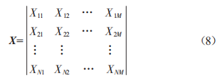 設(shè)接收的B-scan回波數(shù)據(jù)可以表示為矩陣X,數(shù)據(jù)采集中有Ⅳ個(gè)測(cè)點(diǎn),每個(gè)測(cè)點(diǎn)采集了N個(gè)數(shù)據(jù),即可以表示為: