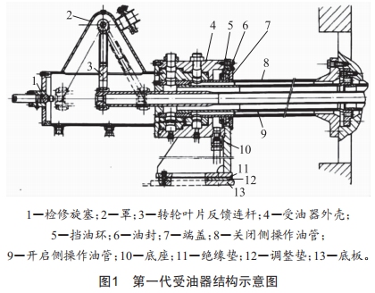 為有效提高龍王臺水電站3×7MW燈泡貫流式機組的自動化程度,實現(xiàn)設(shè)備的無人值守,降低設(shè)備的巡檢要求,對于3×7MW燈泡貫流式機組易發(fā)故障節(jié)點進(jìn)行了技術(shù)升級改造,從源頭上減少故障隱患,進(jìn)而提高該3×7MW燈泡貫流式機組運行的安全性和可靠性。受油器是龍王臺水電站3×7MW燈泡貫流式機組的關(guān)鍵設(shè)備,由于其采用的是第一代受油器,工作性能不佳,易發(fā)生漏油、軸承斷裂等安全故障,在燈泡貫流式機組自動化升級改造的大背景下,必須對第一代受油器進(jìn)行升級改造。