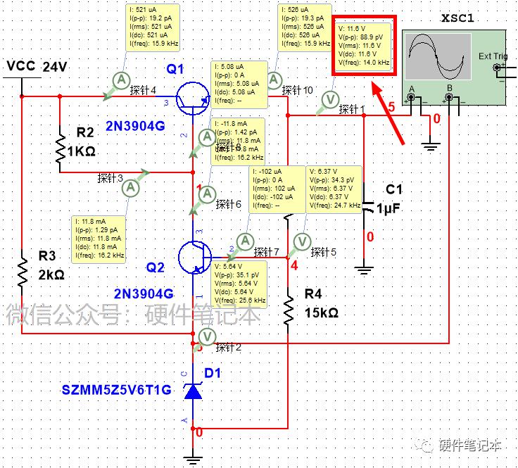 咱們再來仿真一下,仿真結(jié)果也是11.6V。
