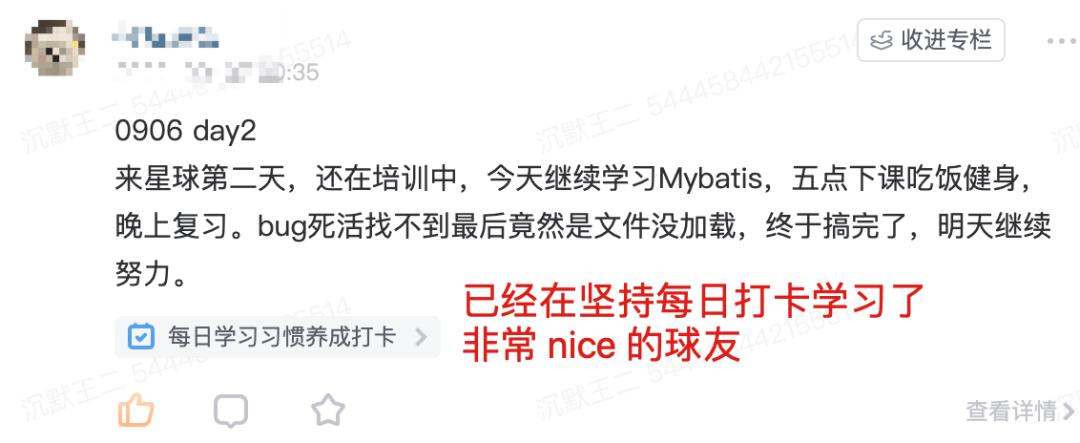 以上就是球友分享的全部內(nèi)容了,文筆沒有很華麗,但很樸實。這位球友已經(jīng)開始堅持每日打卡了,可以看得出非常的自律,相信他一定會前程似錦的。