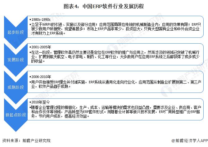 中國ERP軟件行業(yè)發(fā)展較早,目前行業(yè)已經(jīng)較為成熟。行業(yè)經(jīng)歷過起步階段、發(fā)展階段、成熟階段,目前處于轉(zhuǎn)折新起點階段。從一開始ERP僅僅被少部分用戶接受,到后來企業(yè)主動接納ERP軟件,再到ERP軟件行業(yè)化趨勢走強,現(xiàn)如今ERP軟件已經(jīng)不僅僅局限于企業(yè)內(nèi)部,主流廠商開始提供以ERP為核心的套裝軟件,完整的ERP套件已超出了企業(yè)范疇,涉及企業(yè)、供應商、客戶和合作伙伴等領(lǐng)域;而如今的服務方式,不再是以往的購買軟件、安裝硬件才能使用,云計算讓付費更加靈活,服務更加便捷,節(jié)約了用戶成本,使得行業(yè)整體經(jīng)濟效益有所提高。