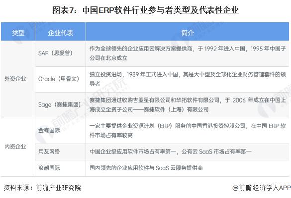 ——ERP軟件行業(yè)供給格局較為穩(wěn)定中國ERP軟件行業(yè)較為成熟,目前參與者眾多,按照企業(yè)注冊資本類型可以劃分為外資企業(yè)及中資企業(yè)。外資企業(yè)主要是包括SAP、Oracle、Sage等國際企業(yè)級應用軟件的巨頭,他們有卓越的產(chǎn)品,有品牌和資金優(yōu)勢;內(nèi)資企業(yè)主要包括金蝶、用友、浪潮、鼎捷軟件等企業(yè),金蝶及用友主要是從財務管理軟件起家,目前已經(jīng)成為中國ERP軟件行業(yè)的領(lǐng)先企業(yè)。
