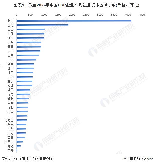 ——北京的ERP軟件企業(yè)平均注冊資本更高根據(jù)中國企業(yè)數(shù)據(jù)庫企查貓,目前中國ERP企業(yè)的平均注冊資本區(qū)域分布中,北京企業(yè)的平均注冊資本最高,達到為4125萬元。此外,江蘇的ERP企業(yè)平均注冊規(guī)模均在1500萬以上,規(guī)模相對較大。北京重點ERP軟件企業(yè)包括用友網(wǎng)絡、致遠互聯(lián)、暢捷通等。