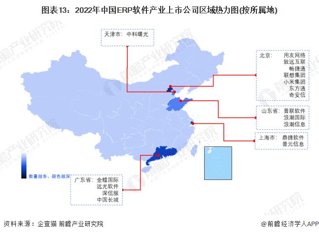 從代表性企業(yè)分布情況來看,北京市的代表性企業(yè)分布數(shù)量最多,有用友網(wǎng)絡、致遠互聯(lián)、暢捷通等ERP軟件企業(yè),還有產(chǎn)業(yè)鏈上游的聯(lián)想、小米、東方通等企業(yè);其次為廣東省,主要有金蝶國際、遠光軟件等ERP軟件企業(yè),以及產(chǎn)業(yè)鏈上游的中國長城、深信服等;山東省有普聯(lián)軟件、浪潮信息;上海市有鼎捷軟件、普元信息等。